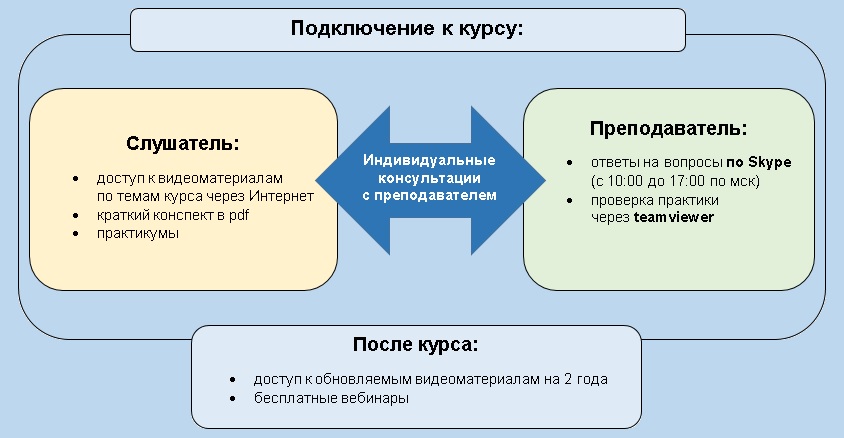 - доступ к материалам курса через Интернет + 2 года после окончания курса