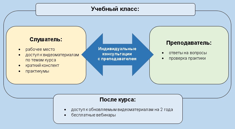 - после обучения получаете доступ к обновляемым видеоматериалам курса на 2 года!